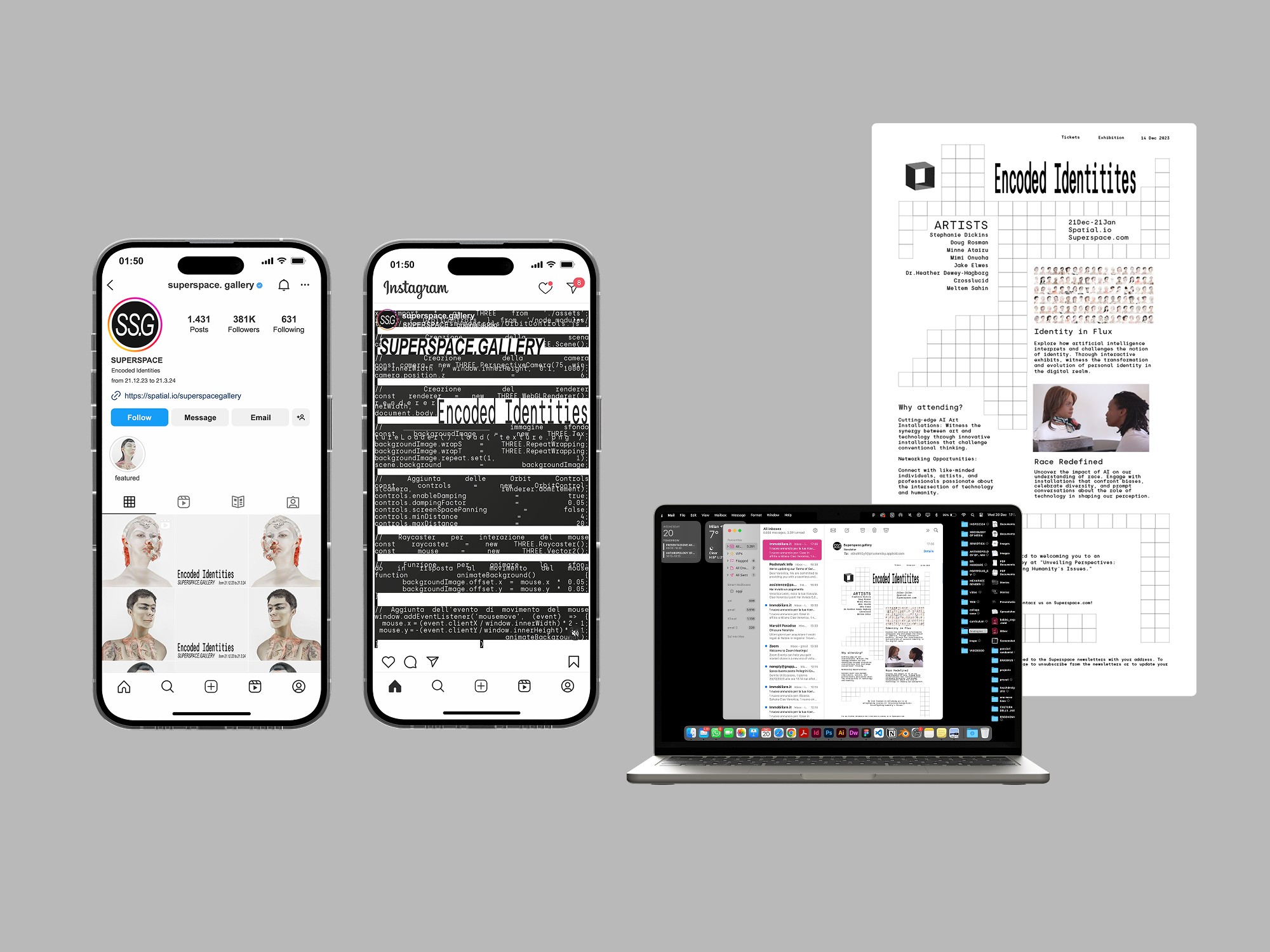 La selezione riunisce artisti che utilizzano l’intelligenza artificiale come strumento di indagine piuttosto che come soggetto. La tecnologia diventa mezzo di introspezione: ritmo visivo e narrativa spaziale invitano il pubblico a osservare e interpretare, trasformando la mostra in un luogo di confronto più che di risposta. Il progetto prende forma in una mostra virtuale modellata in 3D su Spatial, esplorabile in prima persona come un ambiente immersivo, e in un libretto curatoriale che accompagna la visita raccontando opere e concetti. La comunicazione si estende inoltre a social media e newsletter dedicate, creando un ecosistema visivo e narrativo coerente.